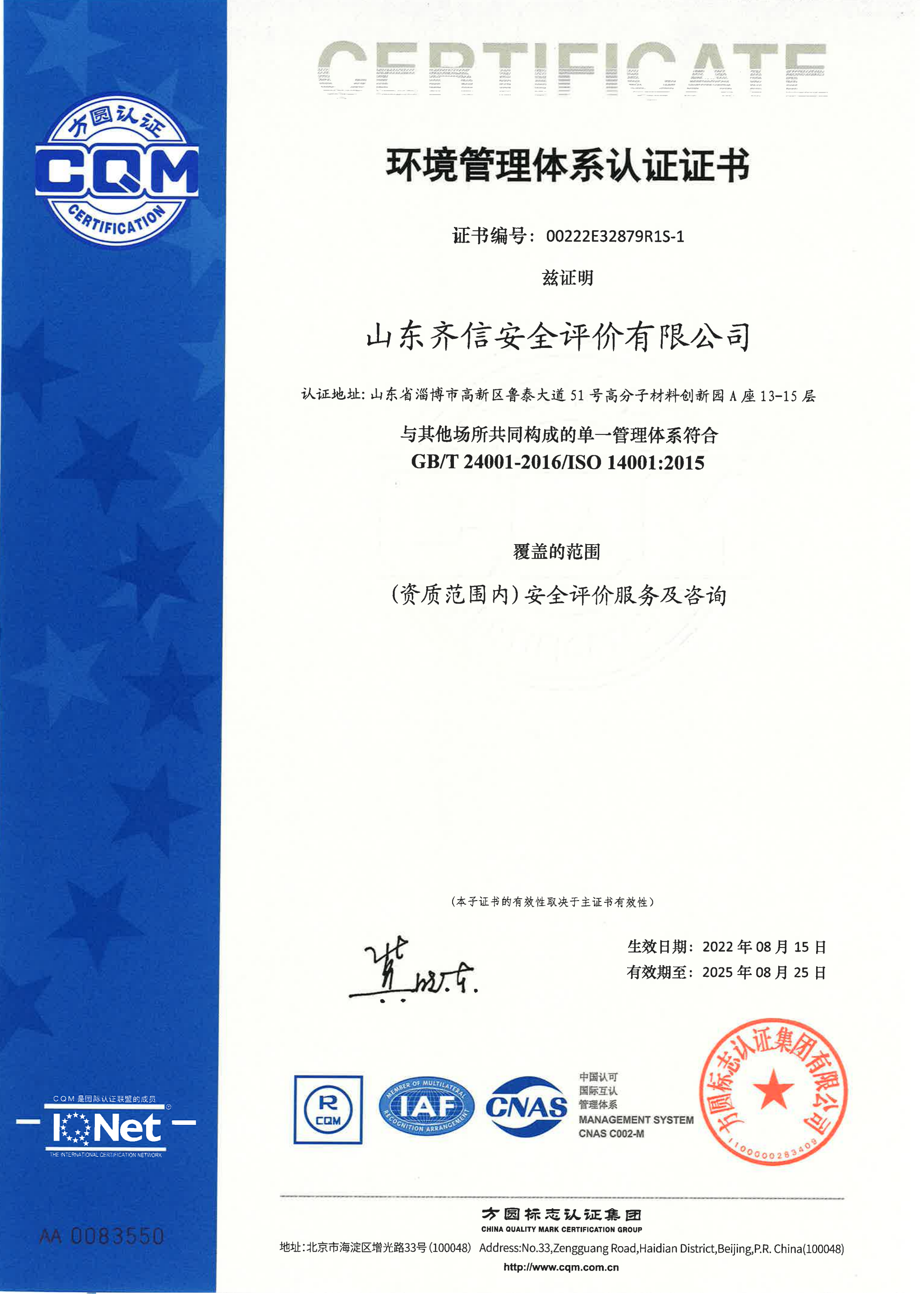 山東齊信安全評價有限公司成立于2005年3月,注冊資本300萬元人民幣,固定資產總值804.8728萬元。法定代表人徐光明,注冊地址及辦公地址位于淄博高新區魯泰大道51號高分子材料創新園A座13-15樓。2005年9月取得安全評價機構乙級資質。自國家應急部1號令實施以來,公司于2020年1月15日取得新安全評價資質,業務范圍包括:陸上油氣管道運輸業;石油加工業,化學原料、化學品及醫藥制造業;金屬冶煉。2018年12月21日取得安全生產標準化二級評審單位,評審范圍:危險化學品、紡織、建材、輕工、冶金、機械。              公司現有人員41人,其中專職安全評價師37人,注冊安全工程師26人,研究員1人、碩士5人、雙學士1人,山東省安全專家庫專家1人、教授級高工1人,高級工程師8人、工程師22人,專職危險化學品標準化評審員、工商貿標準化評審員30人,本科以上學